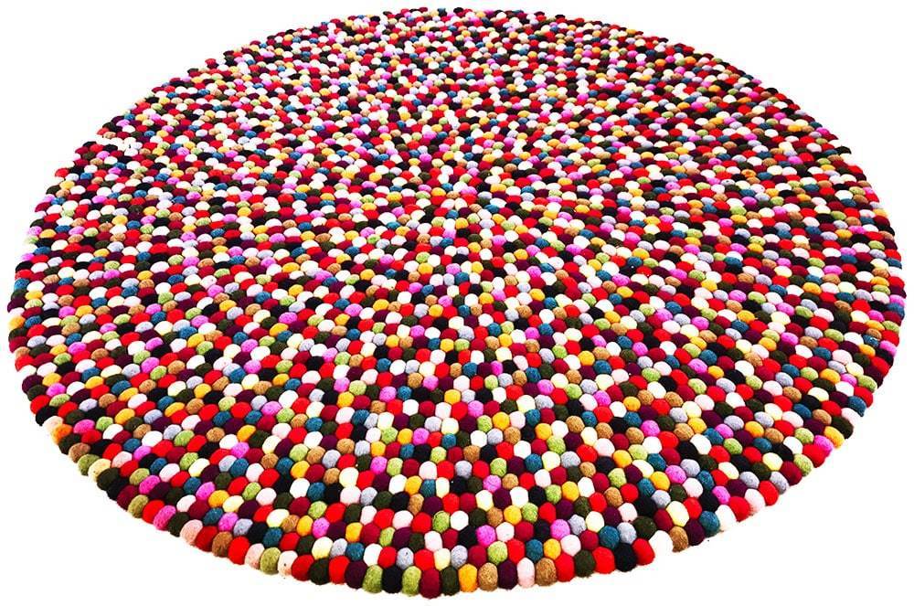 Gi hjemmet ditt litt mer farger med dette livlige og forlokkende kuleteppet. Du får her et klassisk, nordisk, flerfarget kuleteppe i høyeste kvalitet og håndlaget av 100 % ren ull. Teppets runde design gjør at det passer perfekt under sofabordet, på soverommet, barnerommet eller entreen.