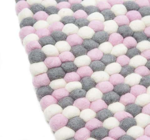 Håndlaget kuleteppe i 100 % ren ull – rosa, grå og hvit