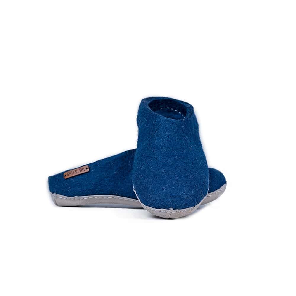 Ulltøffel (100 % ren ull) – Modell Blå m/såle i skinn