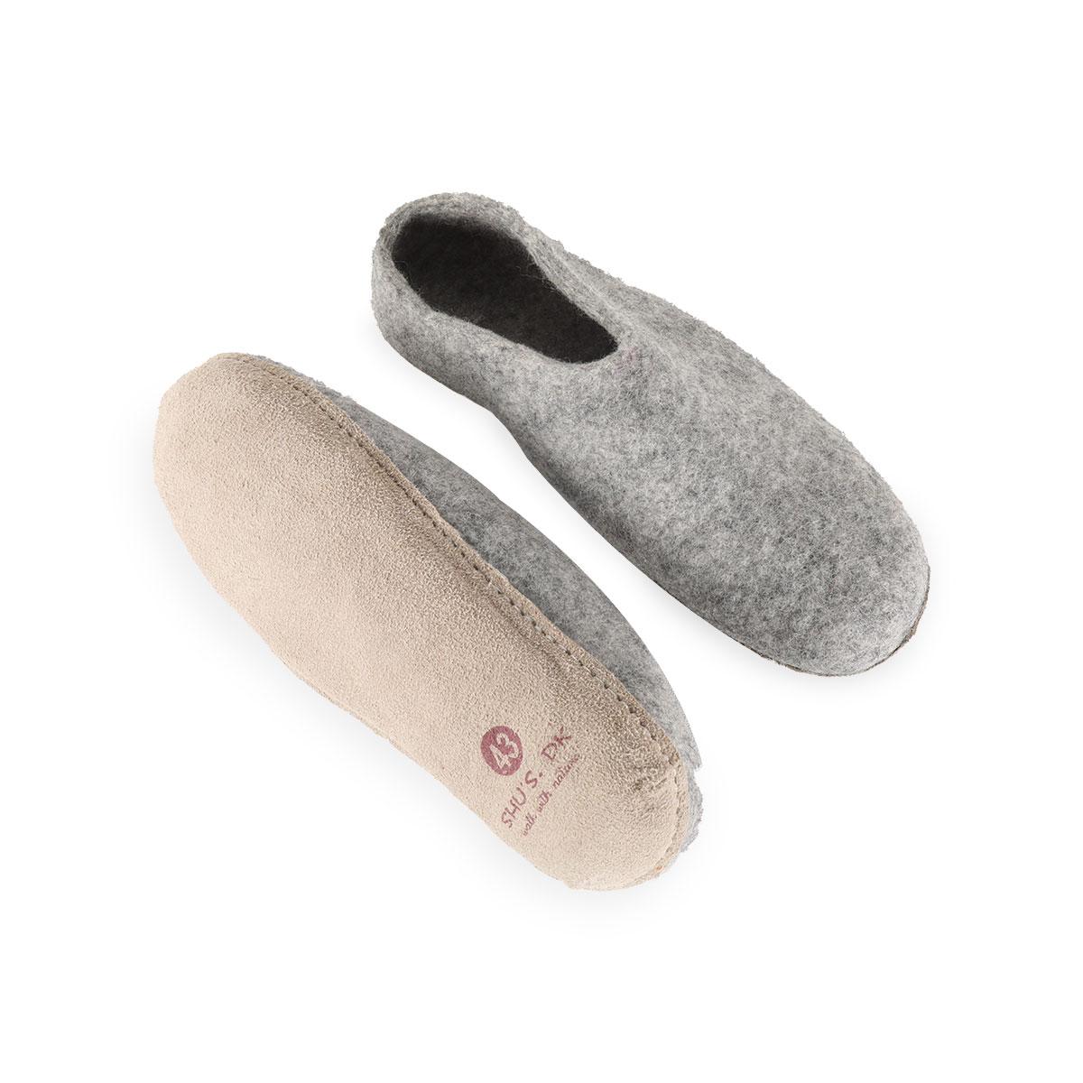 Behagelige og komfortable håndlagde ulltøfler, dansk design fra SHUS. Beskytter dine føtter på kalde dager. Dine føtter holdes varme uten at de svetter, og samtidig tilpasser filtskoen seg din fots form. Produsert i myk og 100 % ren ull fra New Zealand, fri for kjemikalier, krom og metaller.