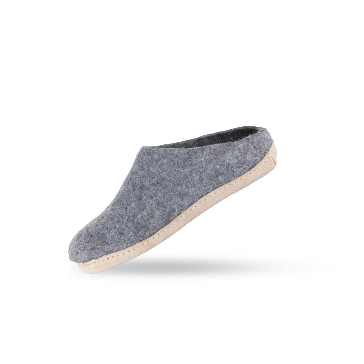 Ulltøffel (100 % ren ull) – Modell Denim m/såle i skinn