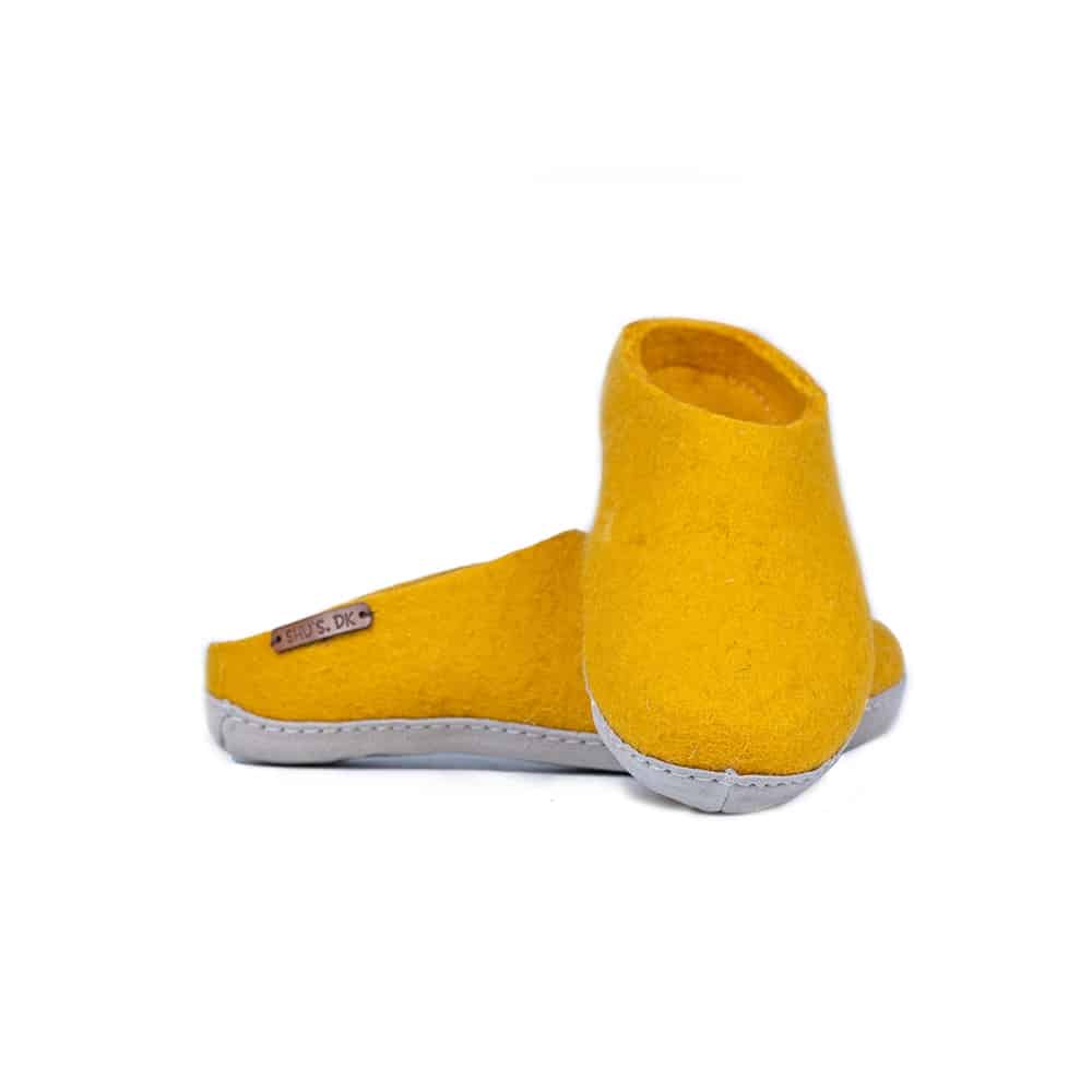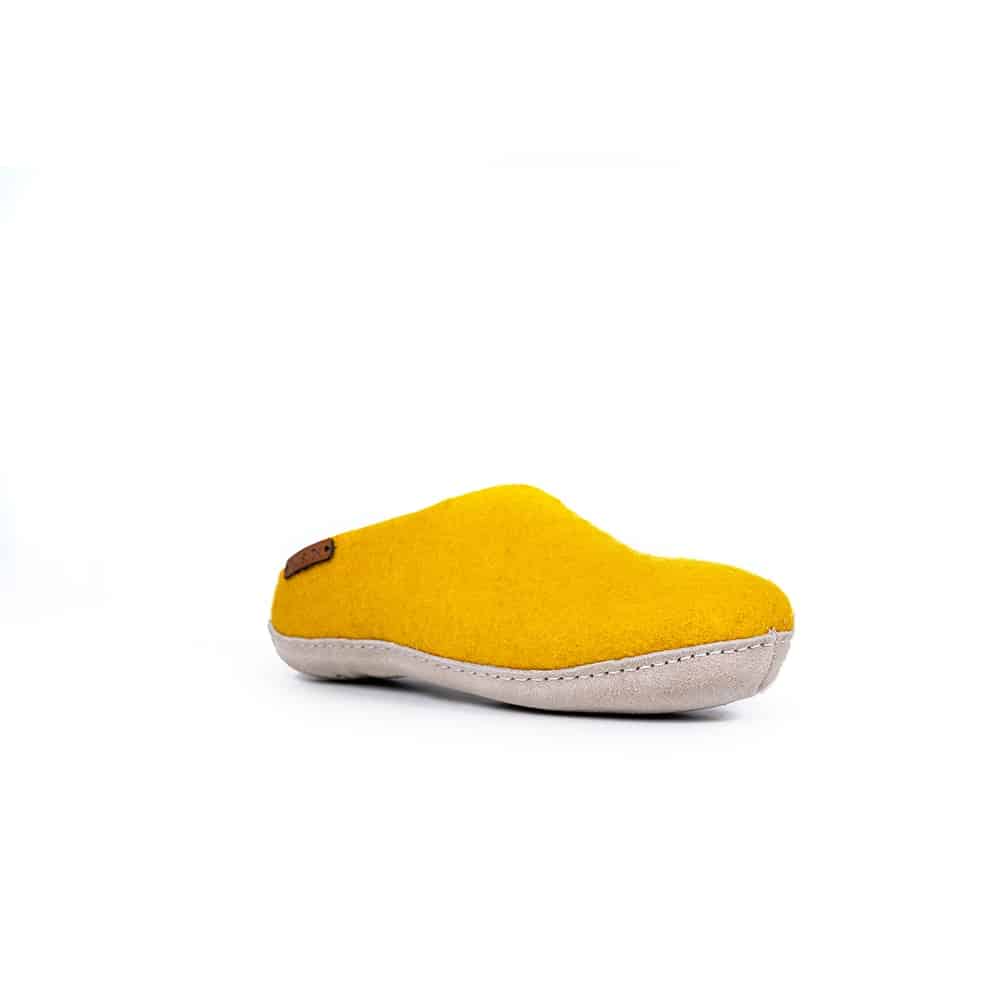 Ulltøffel (100 % ren ull) – Modell Karri gul m/såle i skinn