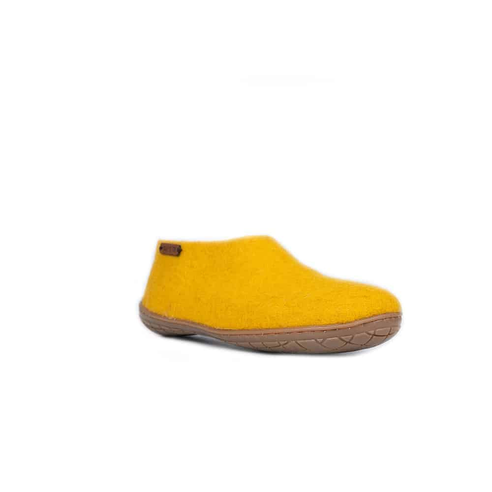 Ulltøfler m/høy hælkappe (100 % ren ull) – Modell Karri gul m/Gummisåle