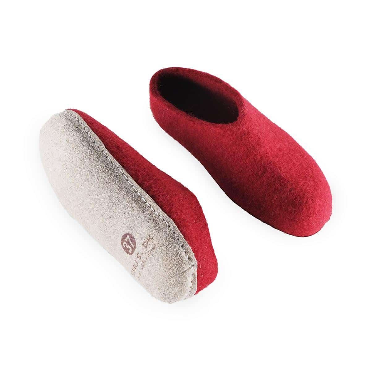 Ulltøffel (100 % ren ull) – Modell Rød m/såle i skinn