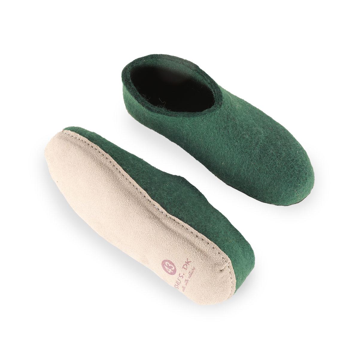 Ulltøfler m/høy hælkappe (100 % ren ull) – Modell Grønn m/såle i skinn