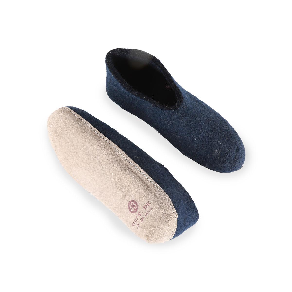 Ulltøfler m/høy hælkappe (100 % ren ull) – Modell Blå m/såle i skinn