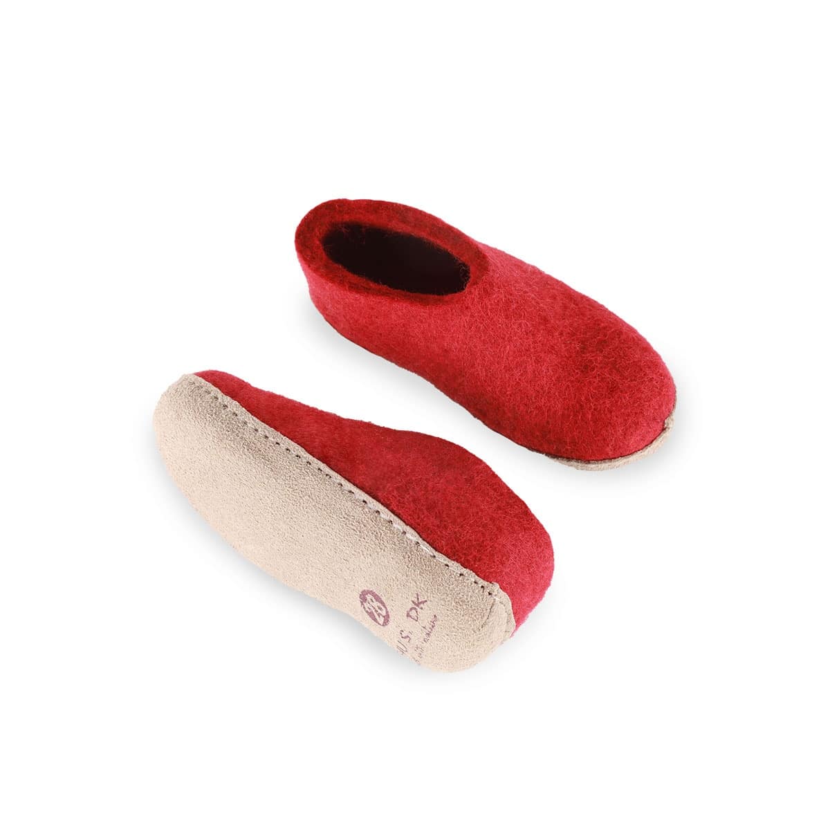 Ulltøfler Barn (100 % ren ull) – Modell Rød m/såle i skinn
