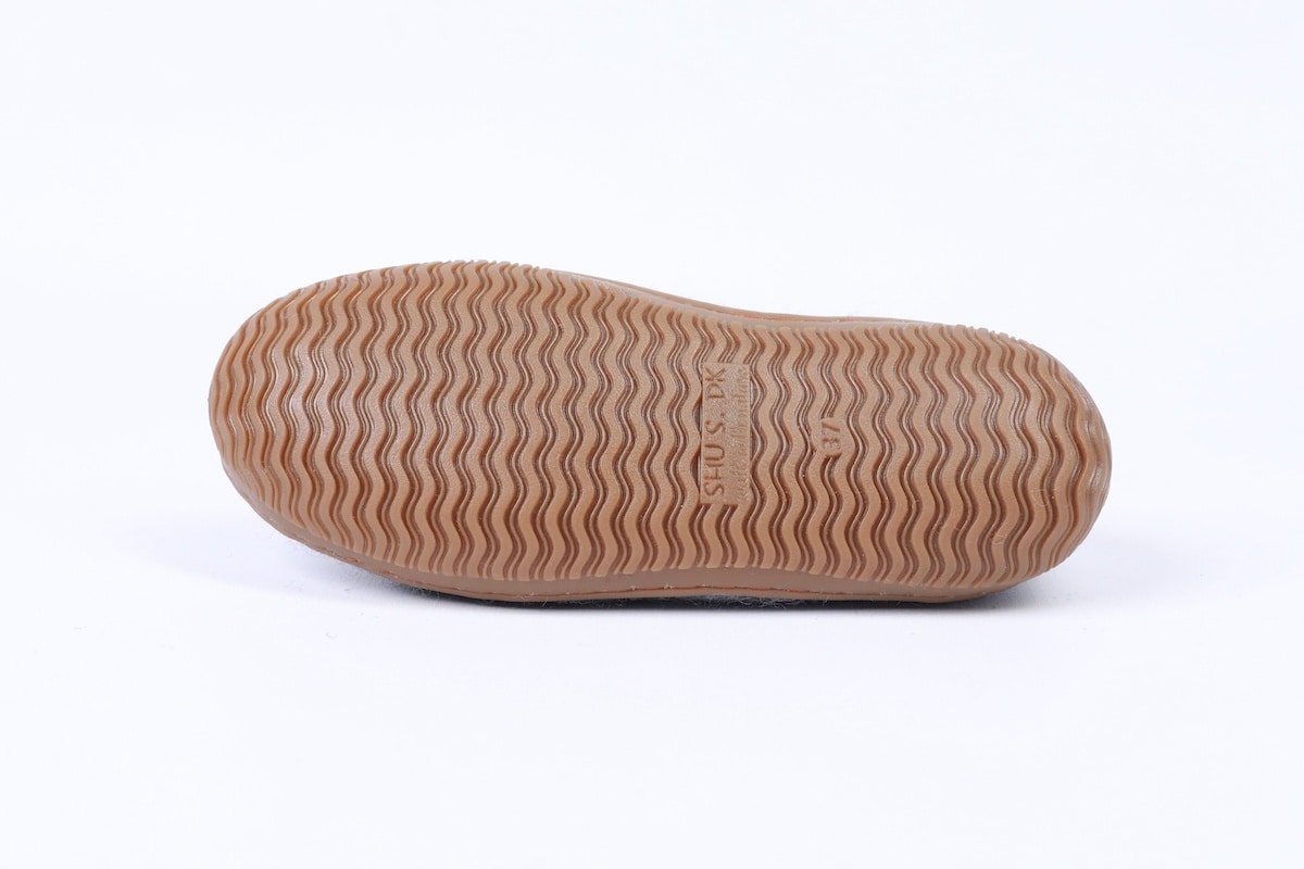 Behagelige og komfortable håndlagde ulltøfler, dansk design fra SHUS. Beskytter dine føtter på kalde dager. Dine føtter holdes varme uten at de svetter, og samtidig tilpasser filtskoen seg din fots form. Produsert i myk og 100 % ren ull fra New Zealand, fri for kjemikalier, krom og metaller.