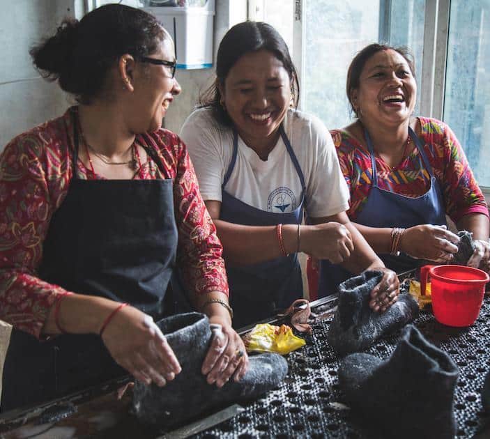 Vi går inn for bæredyktighet, sosialt ansvar og ikke minst å levere kvalitetsfottøy uten bruk av kjemikalier og andre skadelige stoffer. Alle våre barnesko er håndlaget av dyktige og dedikerte kvinner fra Nepal, som gjør hver ulltøffel helt unik. Vi ønsker å gi kvinner i Nepal mulighet for å holde seg beskjeftiget med et meningsfylt arbeide i gode omgivelser.