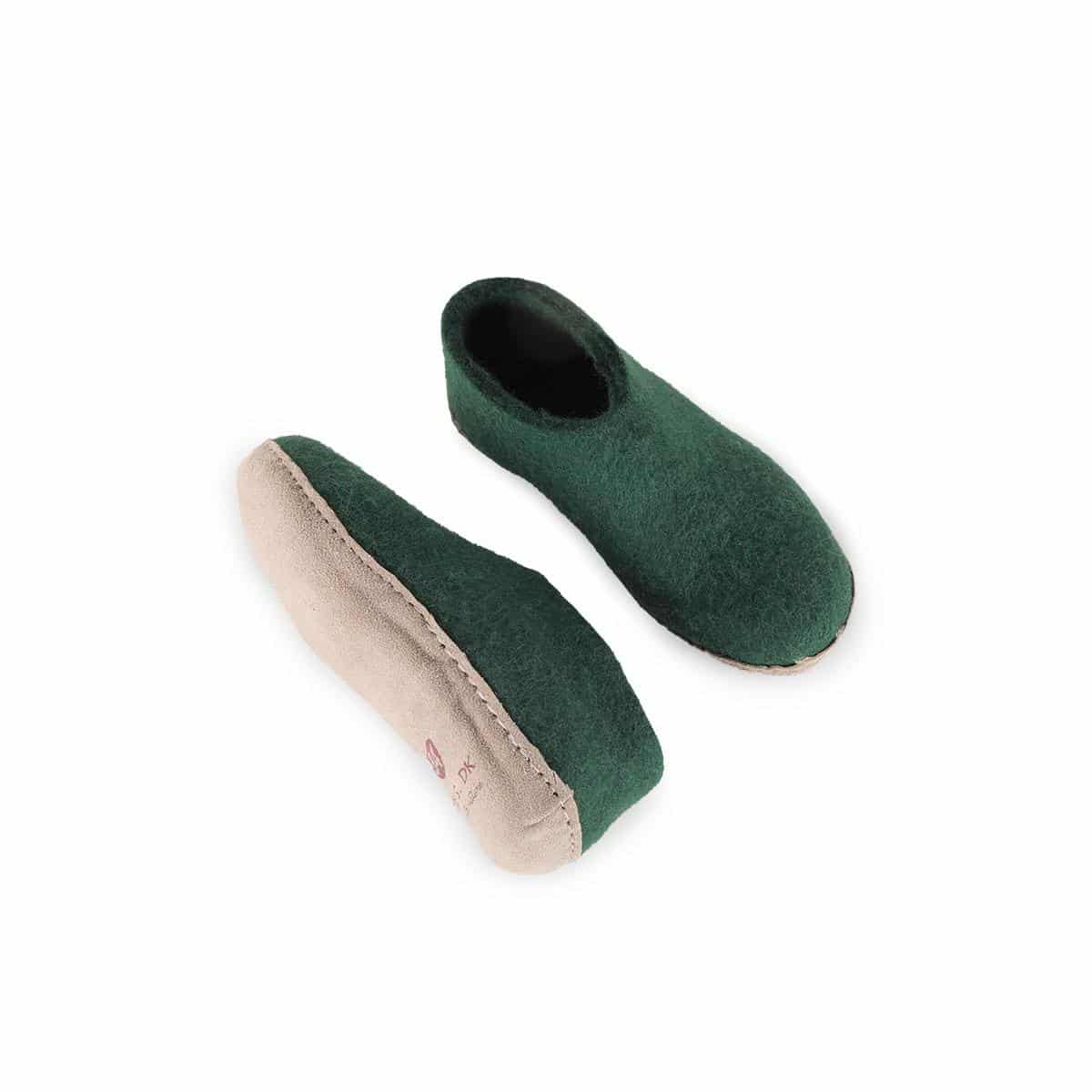 Ulltøfler Barn (100 % ren ull) – Modell Grønn m/såle i skinn